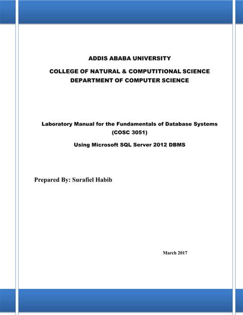 Read Online fundamentals of database systems laboratory manual1 Doc